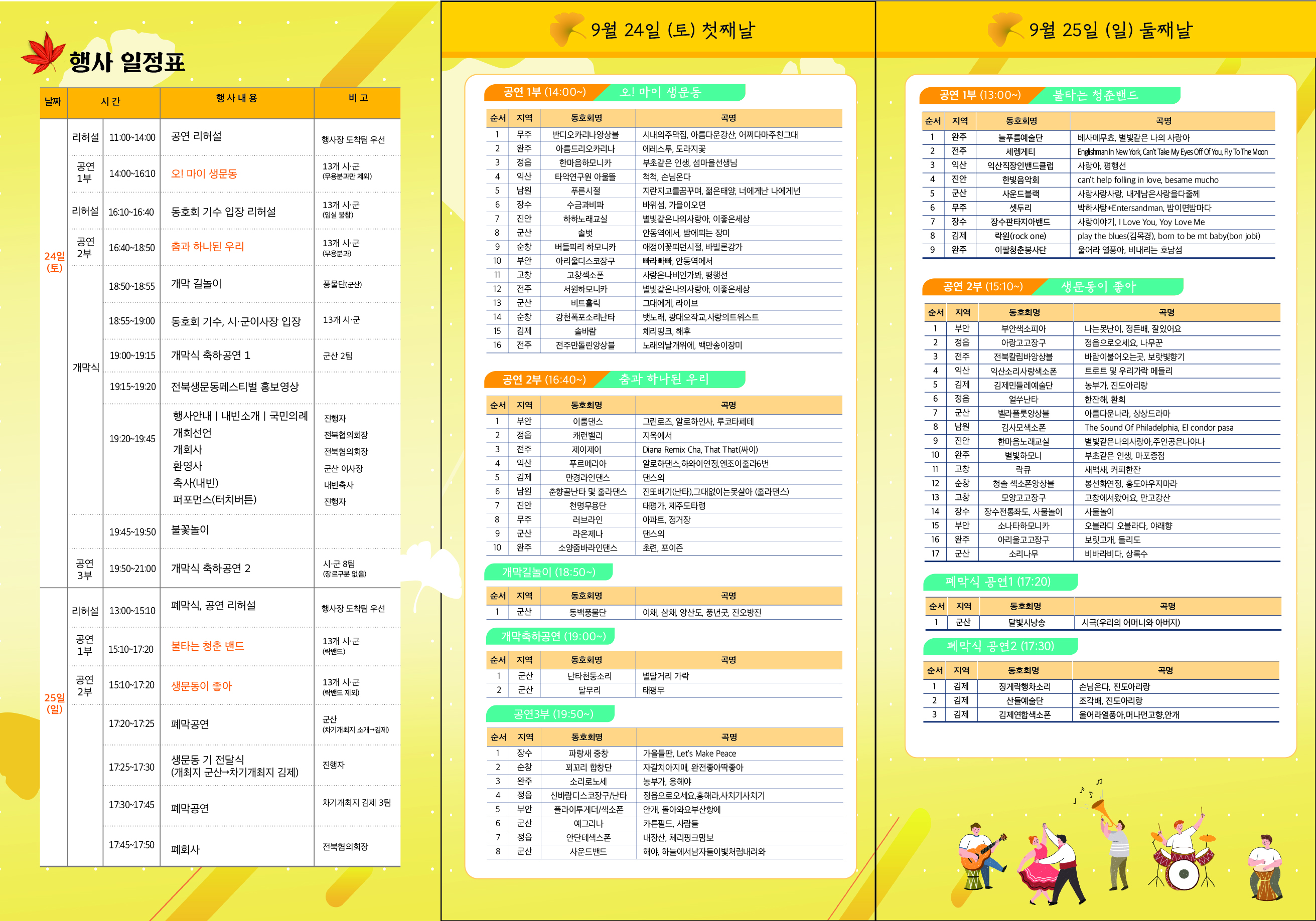- 공연 : 오! 마이 생문동, 춤과 하나되는 우리, 개막 축하공연 1,2부/폐막공연/생문동이 좋아/불타는 청춘밴드