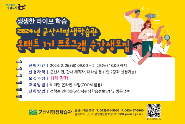 | 232 | 2024년 군산시평생학습관 온택트 1기 프로그램 수강생 모집 |