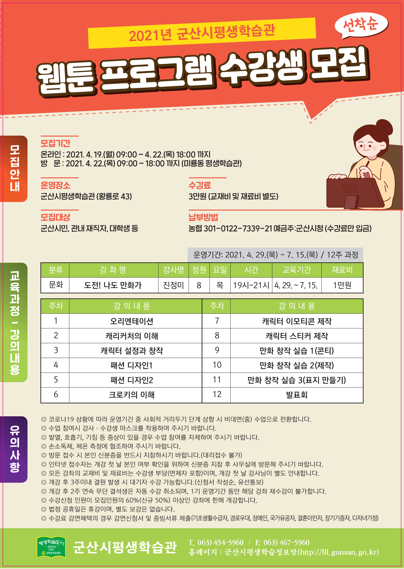 2021년 월명평생학습센터&웹툰 프로그램 수강생 모집