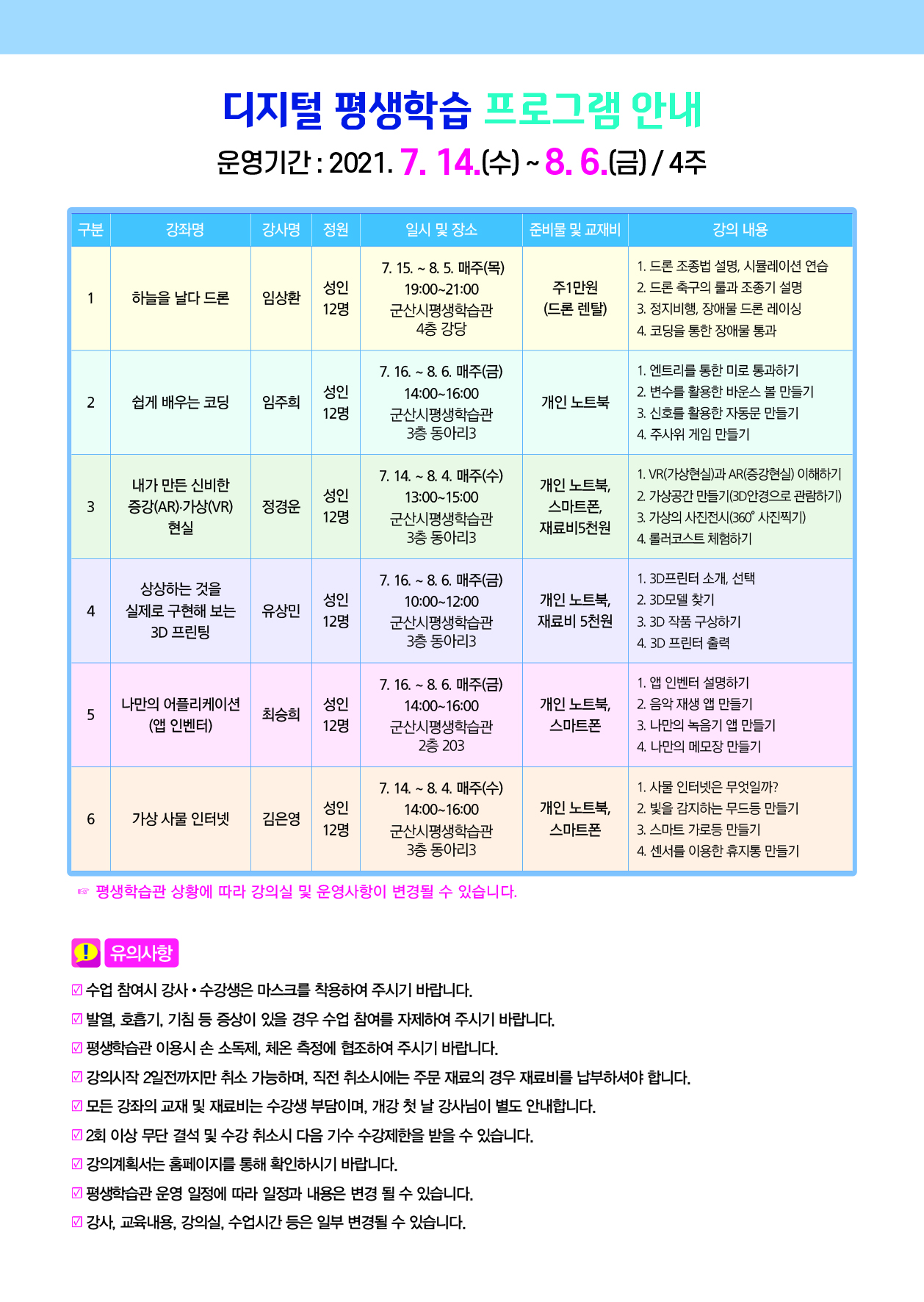 4. 신청방법 : 선착순 인터넷 접수(군산시평생학습정보망)