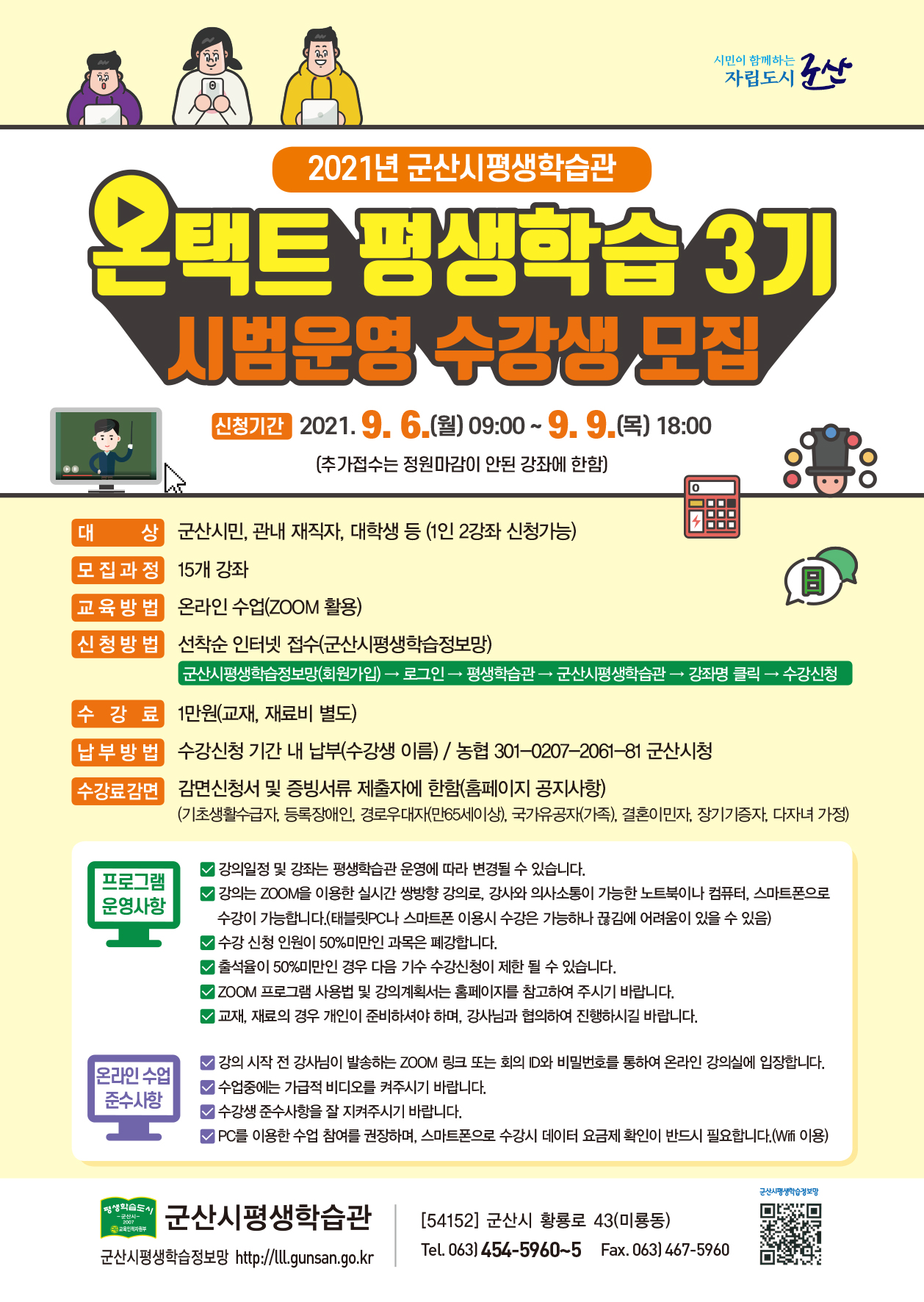 7. 기타 자세한 사항은 평생학습관 (063-454-5960~5)으로 문의하시기 바랍니다.