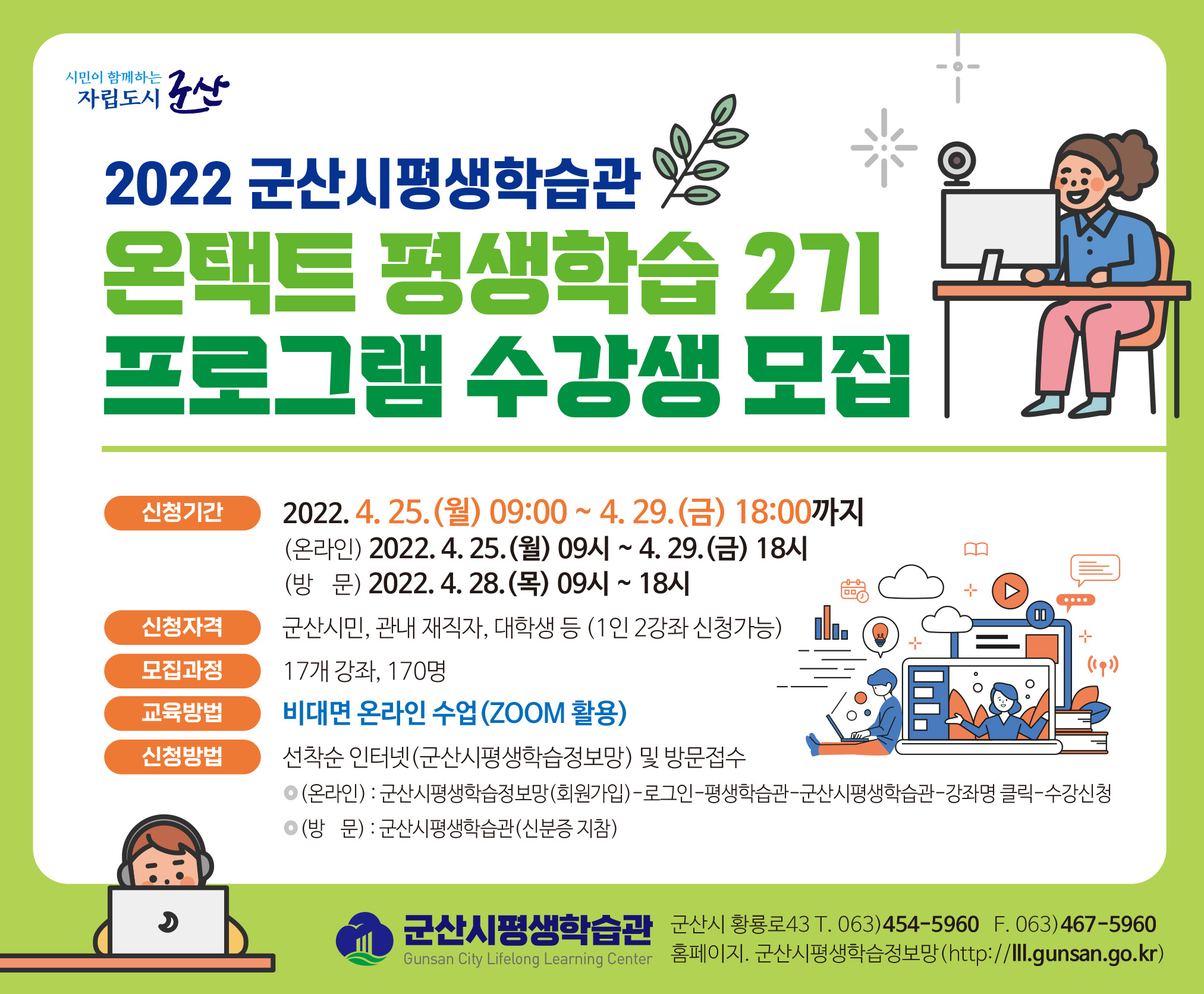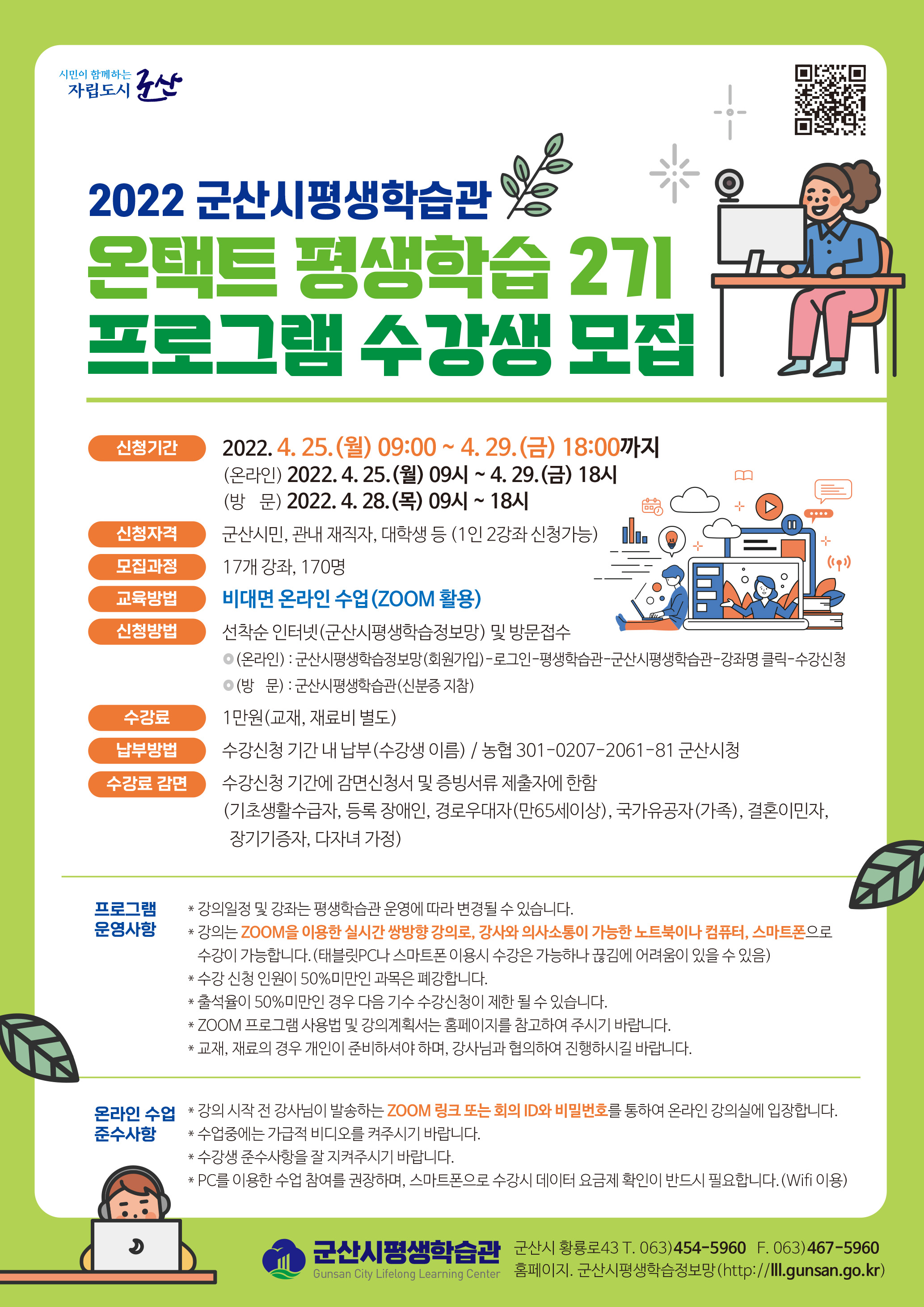 □ 신청방법 : 선착순 인터넷(군산시평생학습정보망) 및 방문접수