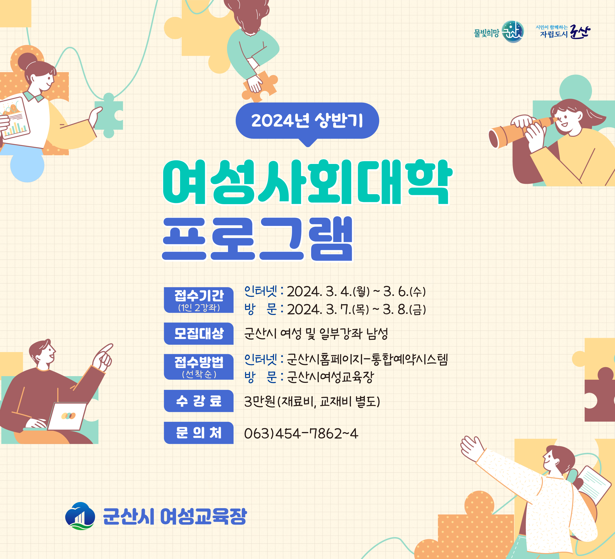 * 모집대상 : 군산시 일반여성 및 일부강좌 남성