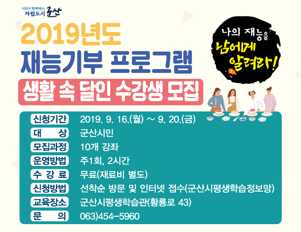 2019년도 재능기부 프로그램 『생활 속 달인』 수강생 모집