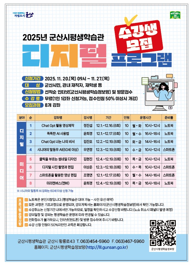2025년 군산시평생학습관 「디지털 프로그램」 수강생 모집