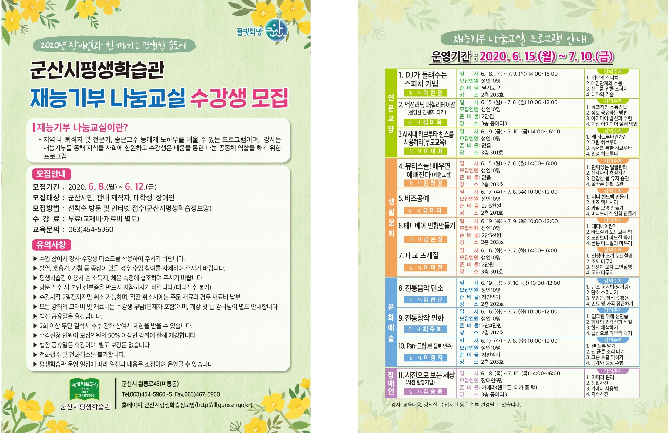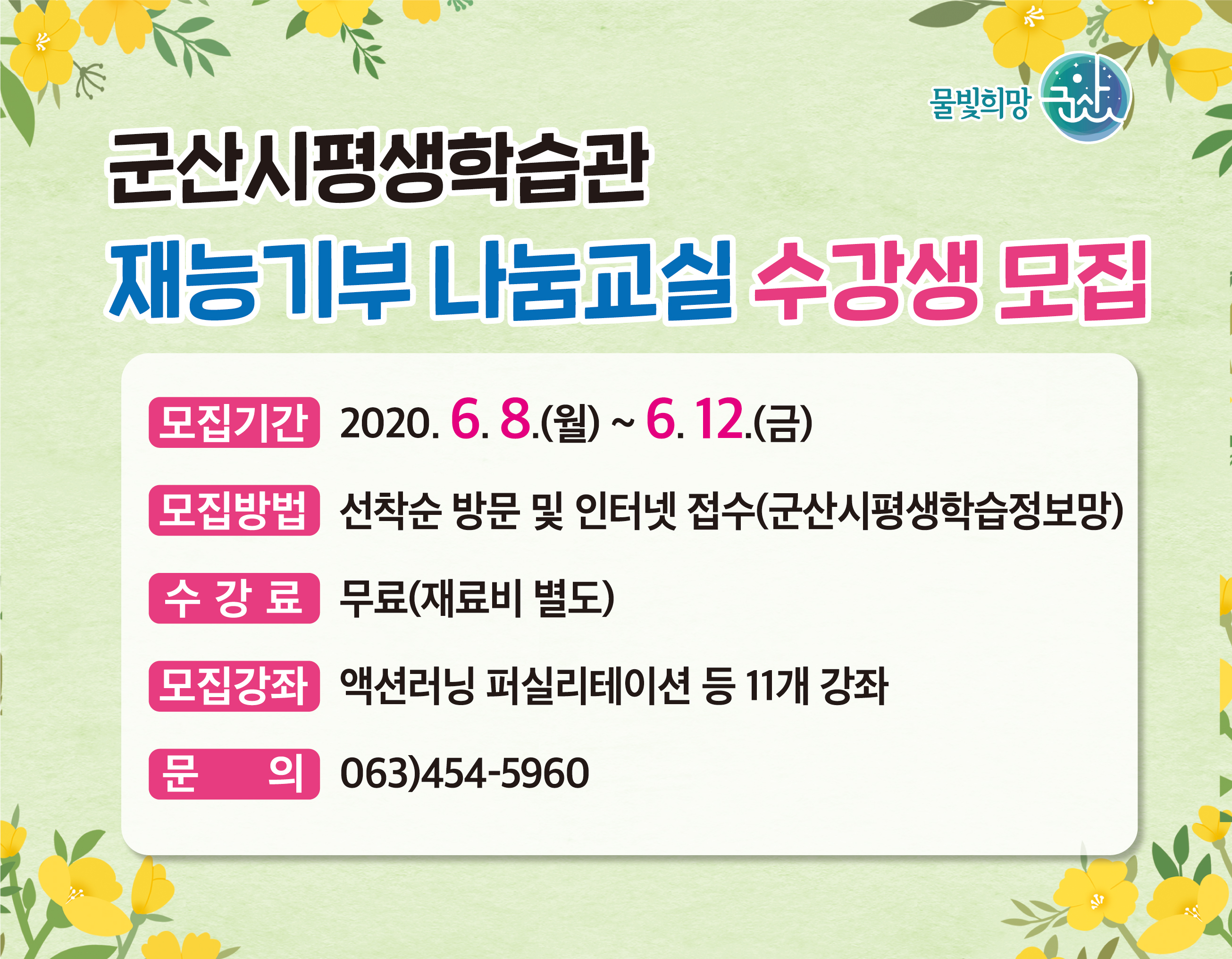 군산시평생학습관 재능기부 나눔교실 수강생 모집