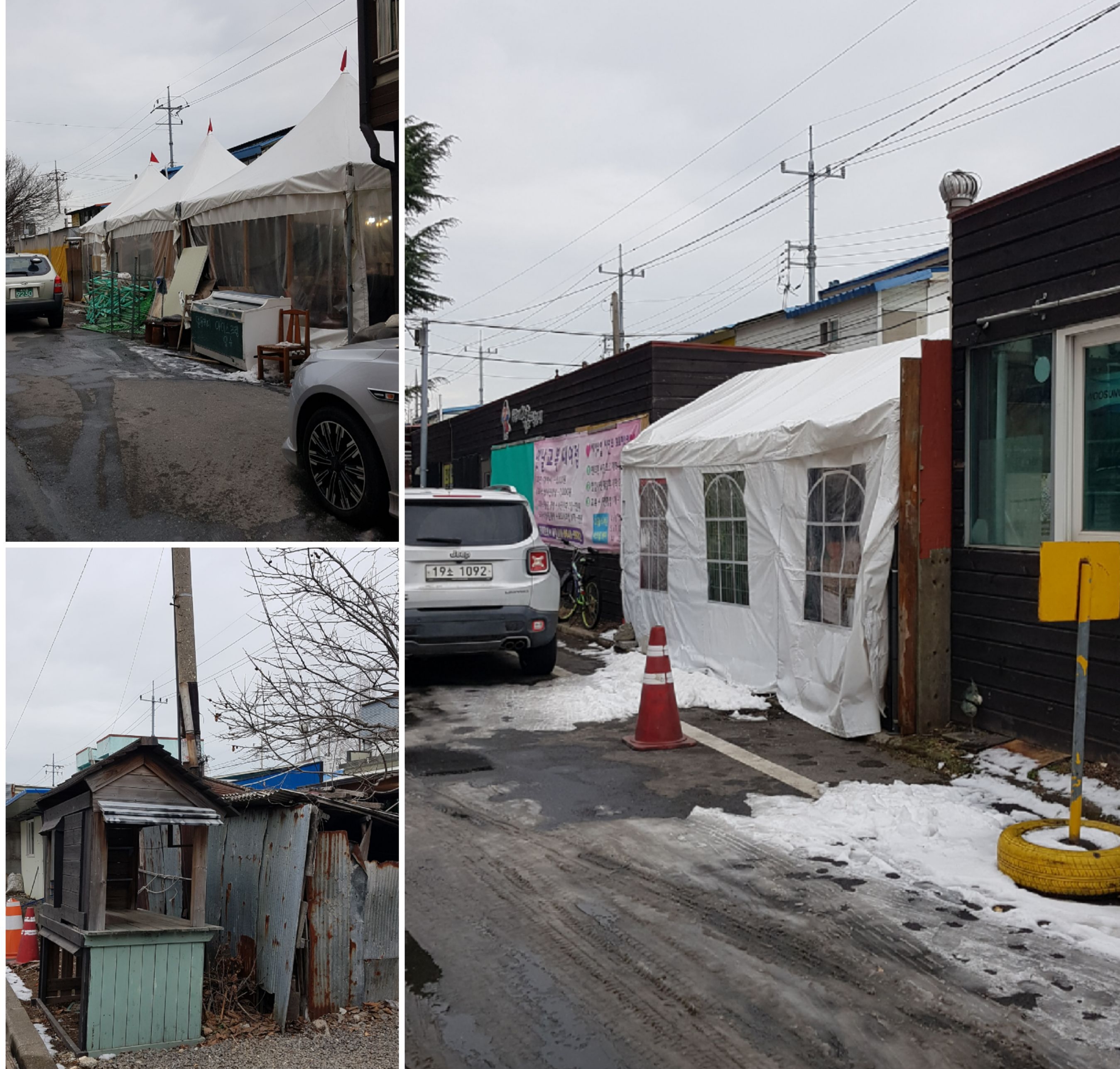 경암동 철길마을이 알려지면서 언제부터인가 가게들이 하나두개 생기더니 이제는 부향하나로 아파트1동옆에서 부터 공공화장실전까지 쭈욱 생겼네요. 그런데 가게앞은 너도나도 자기땅인거처럼 천막및 다양하게 활용하고 있더라고요. 그로인해 뒤쪽은 가게사장님들의 전용주차장이 되었고 연탄재나 쓰레기는 아파트옆에다 버리더라고요. 그리고 관광객들은  쓰레기를 여기저기 버리고 가고 아무곳이나 담배를 피고 그냥 거리에 버리더라고요.  관광객이나 주변에 사는분의 쾌적한 공간을 마련해주는 것은 어떤지요? 아침에 매캐한 연탄냄새를 더이상 맡고 싶지 않네요. 나무를 심거나 벤치를 놓아 쉴수있는 공간을 마련해도 좋을것같습니다.