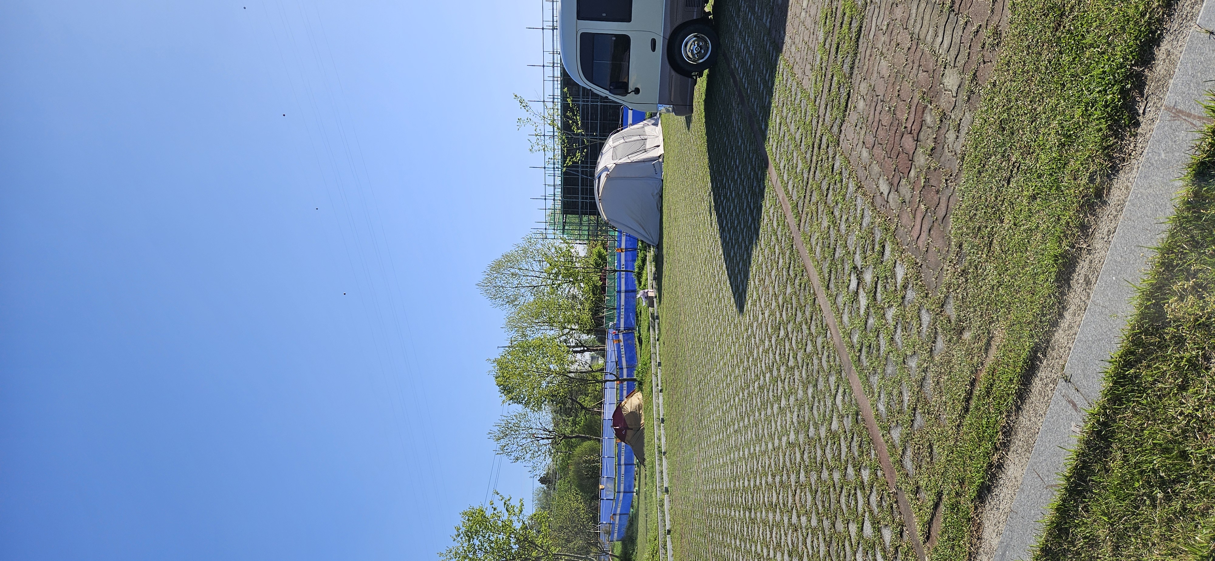 장기설치된 텐트와 캠핑카.캠핑트레일러때문에