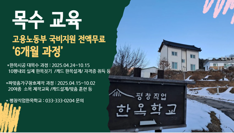 교육내용:10평내외 실제 한옥짓기 /캐드 한옥설계/자격증 취득 등