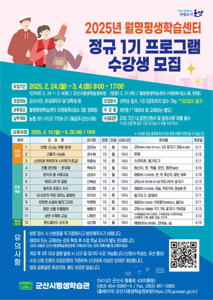 | 282 | 2025년 월명평생학습센터 정규 1기 프로그램 수강생 모집 안내 |