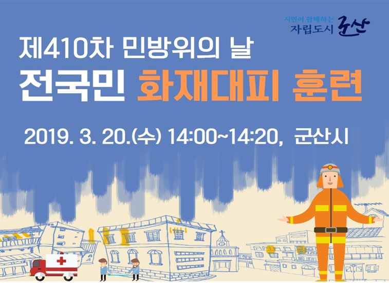제410차 민방위의날 전국민 화재 대피 훈련 실시됨을 알려드립니다.