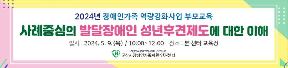 | 245 | 2024년 장애인가족지원인권센터 장애인가족 역량강화사업 부모교육 안내 |