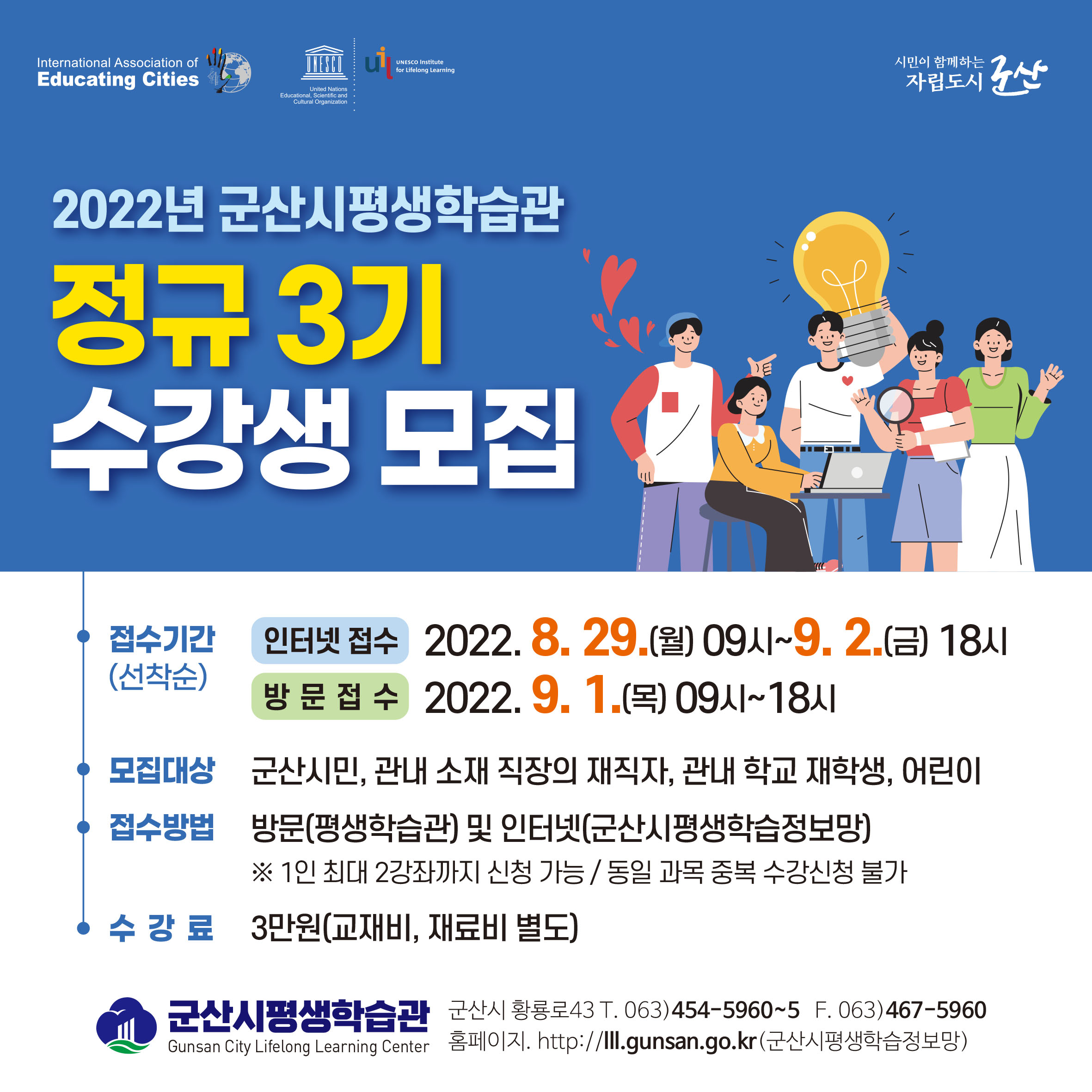 (인터넷) 2022. 8. 29.(월) 09시 ~ 9. 2.(금) 18시까지 / 군산시평생학습정보망