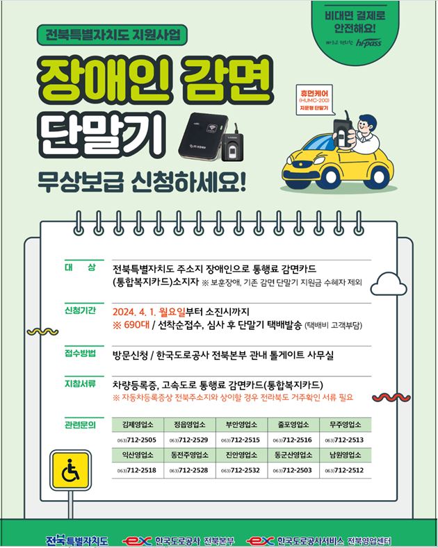 | 106 | 2024년 장애인 하이패스 단말기 지원사업 홍보 알림 |
