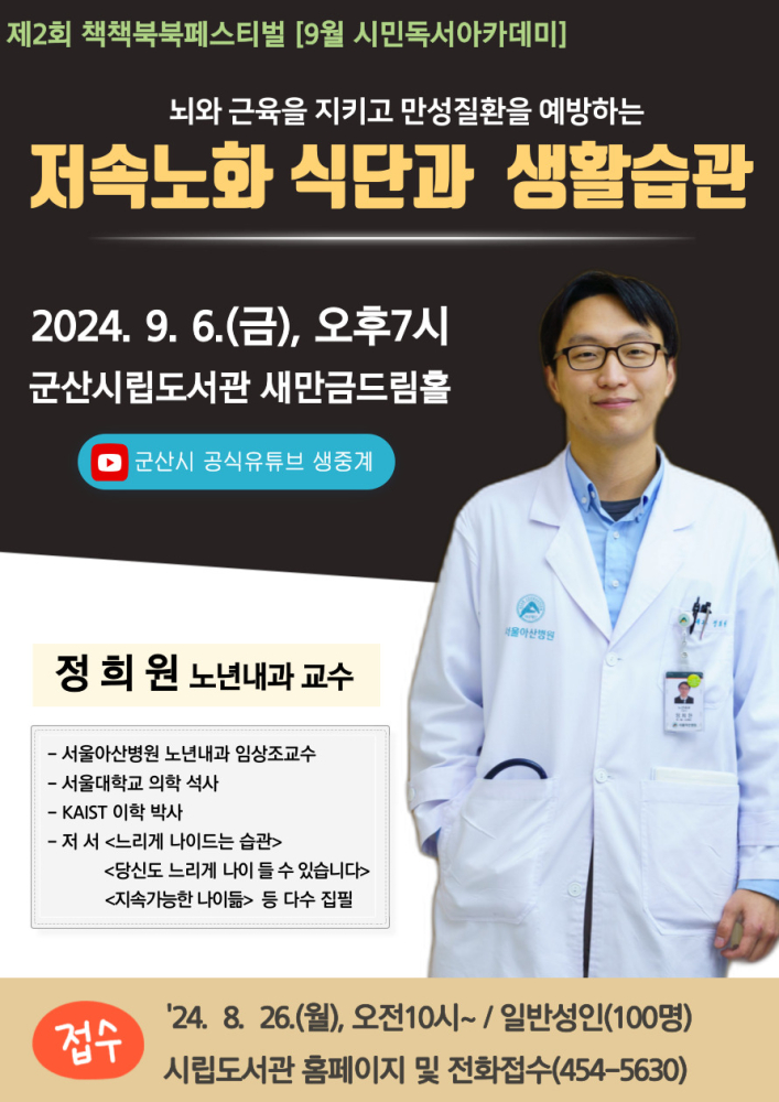 | 351 | 군산시립도서관 제2회 책책북북페스티벌 '정희원 노년내과 교수 초청강연' |