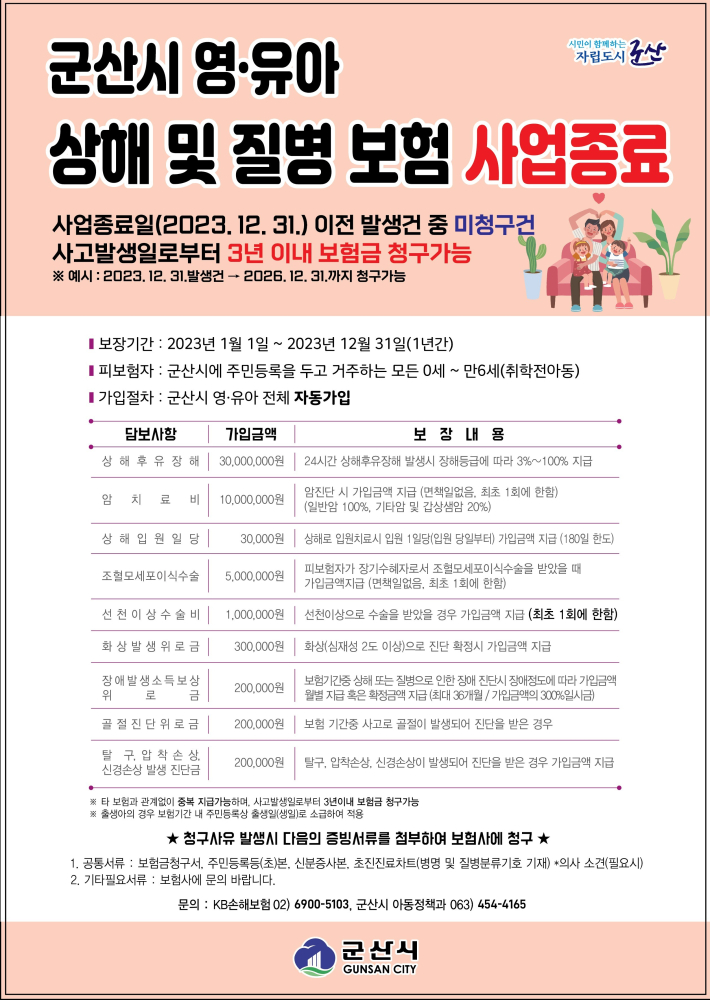 | 69 | 군산시 영유아 상해 및 질병 보험사업 종료 |