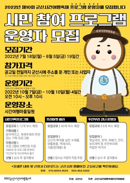 | 212 | 2022년 제10회 군산시간여행축제 시민 참여 프로그램 운영자 모집 |