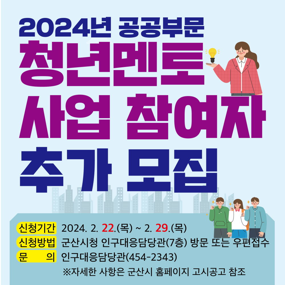 | 5962 | 2024년 공공부문 청년멘토 사업 참여자 추가 모집 |