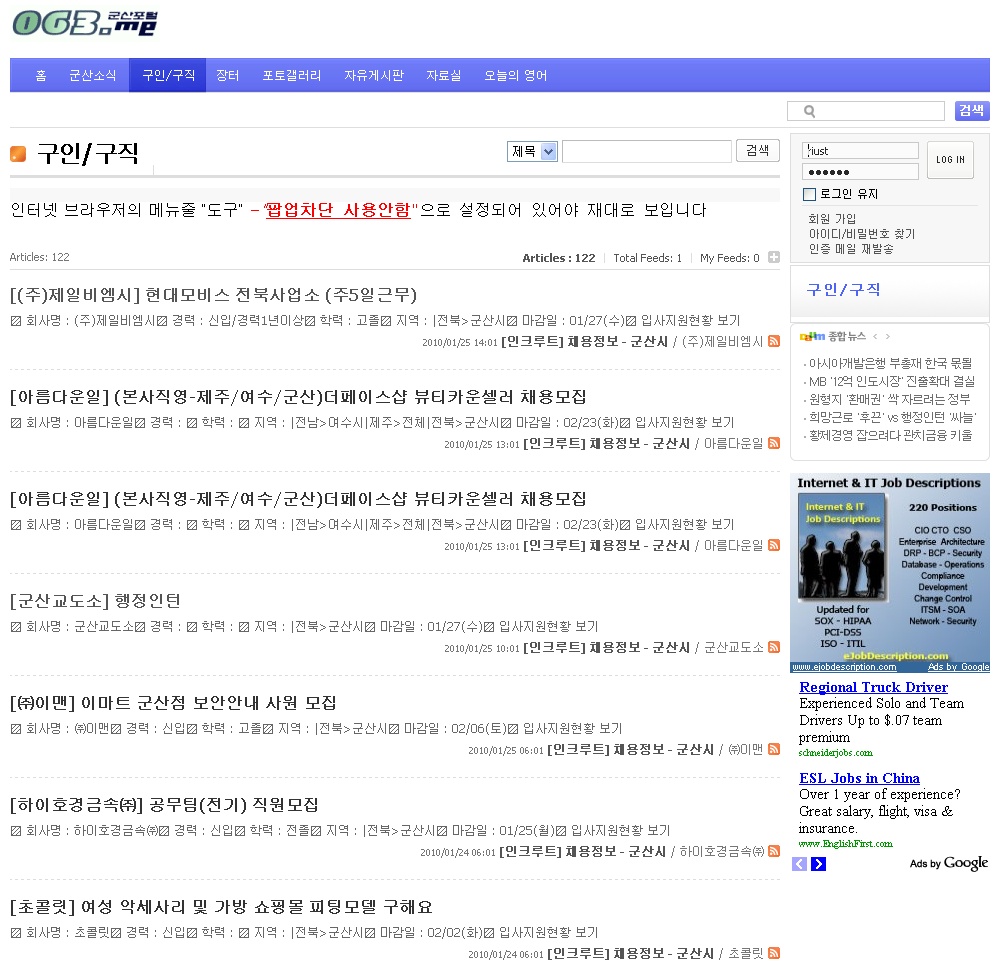 4284 군산 구인/구직 사이트 입니다 다운받기 *** 10.01.25 2364