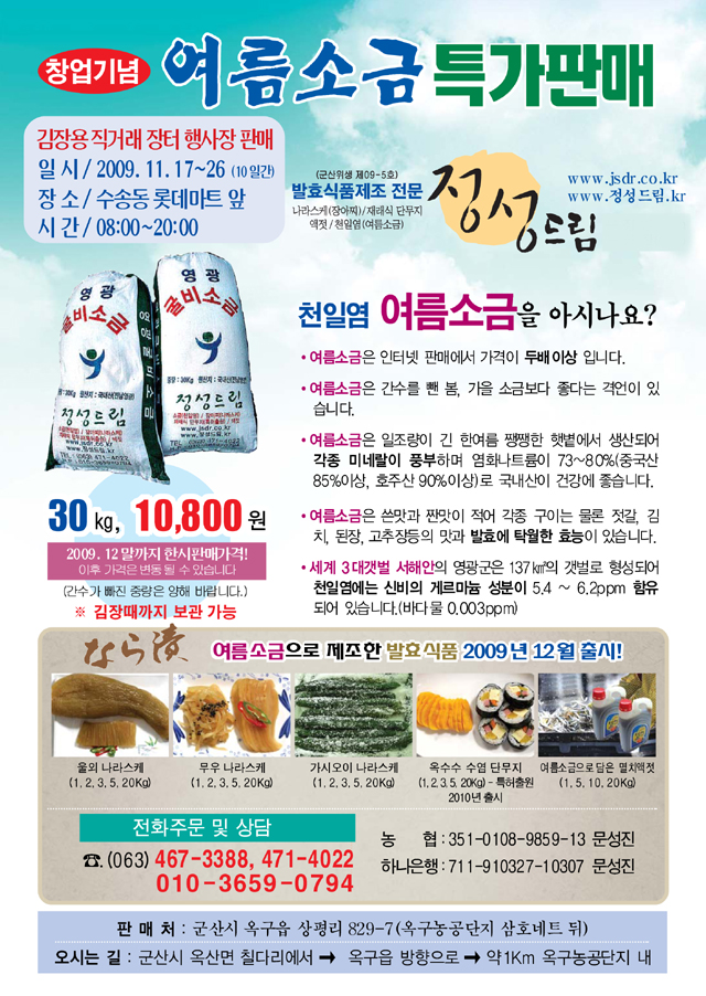 4191 군산시 김장용 직거래장터 여름소금 특가판매 다운받기 *** 09.11.13 1840