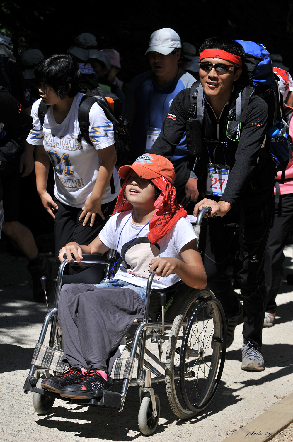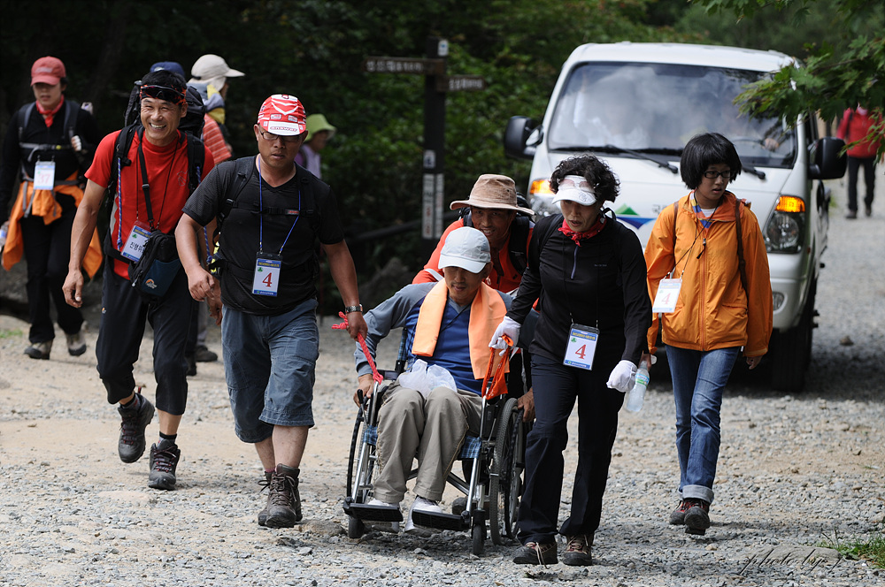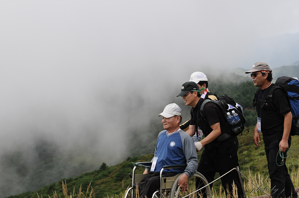 8월의 뙤약볕 아래에서 땀흘리며 휠체어를 뒤에서 밀고 앞에서 당기며 불편한 그들의 손과발,귀와 입이되어 잠시의 외출도 부자연 스러워 꺼리게 되는 장애인들에게 산악인들의 놀이마당인 산을 함께 느끼고 그들에게 사회에 당당하게 서서 할수있다는 자신감을 진작시키기 위함에 부족함이 없었다고 보여 집니다.