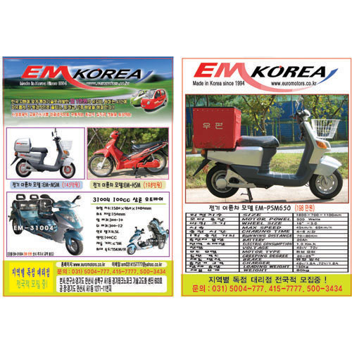 (주)이엠코리아에서 특허 기술고 개발한 전기 이륜차를 소개 합니다 .