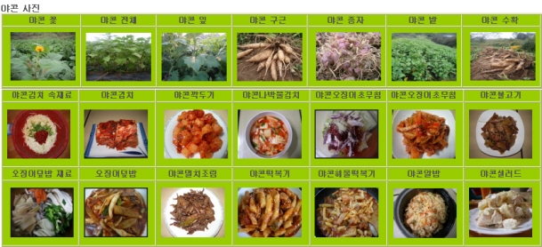 -야콘동치미,야콘김치,야콘칼국수,야콘제육덮밥,야콘오징어덮밥,야콘오징어채무침 등 더 많은 사진이나 음식자료는 홈페이지를 이용바랍니다.
