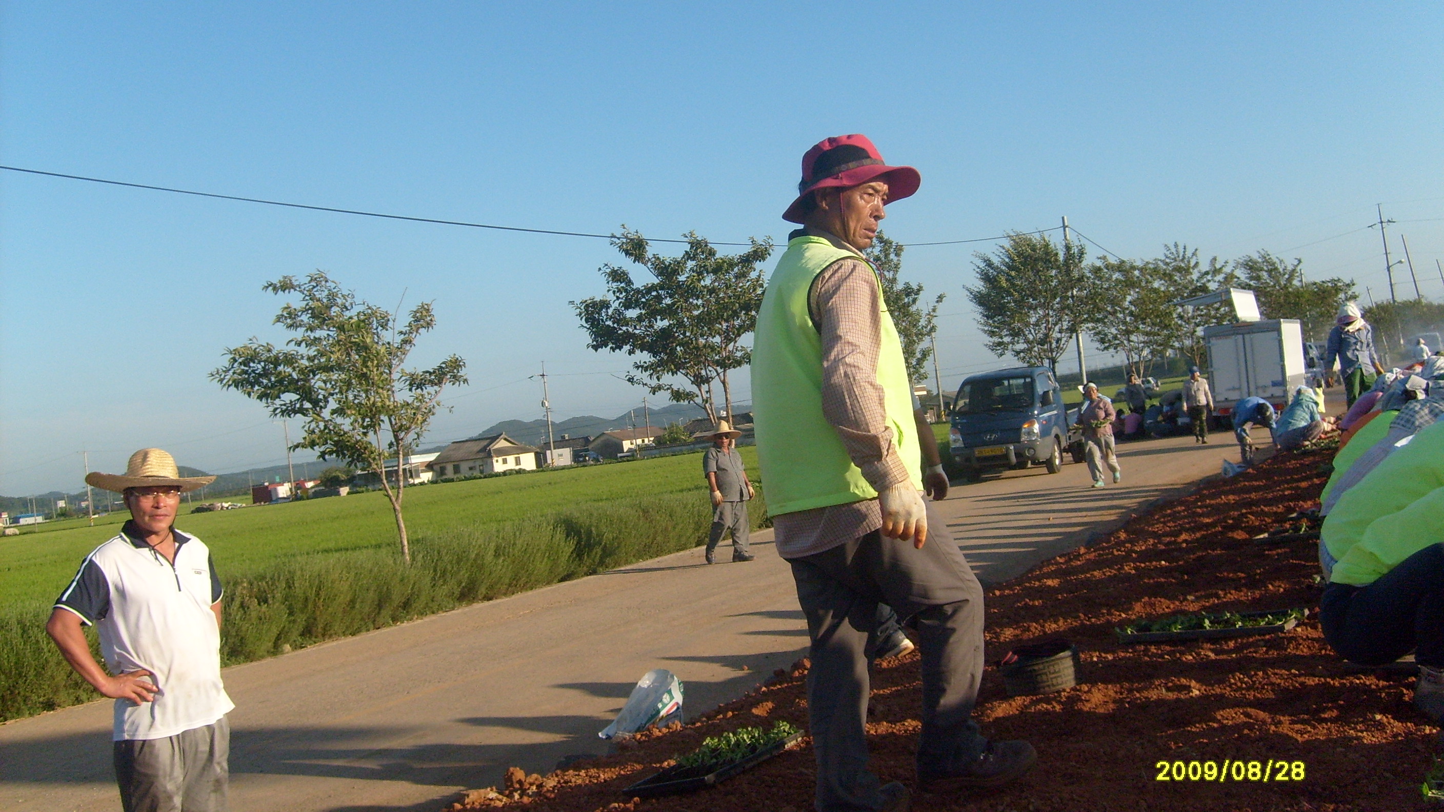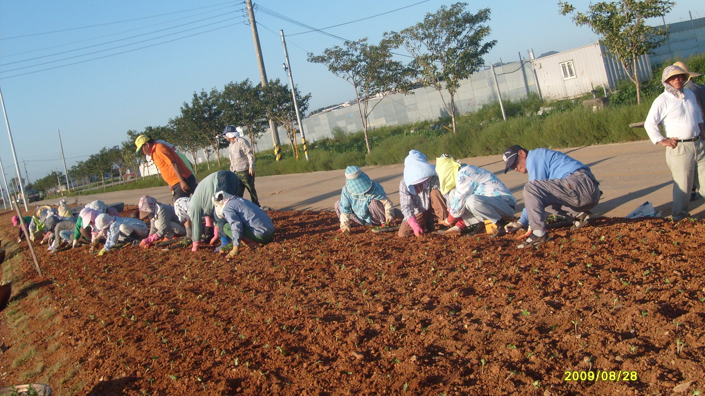 일부는 포크로 모종을 빼고 일부는 심고 일부는 물 뿌리고 많은 인원이 투입됐지요.
