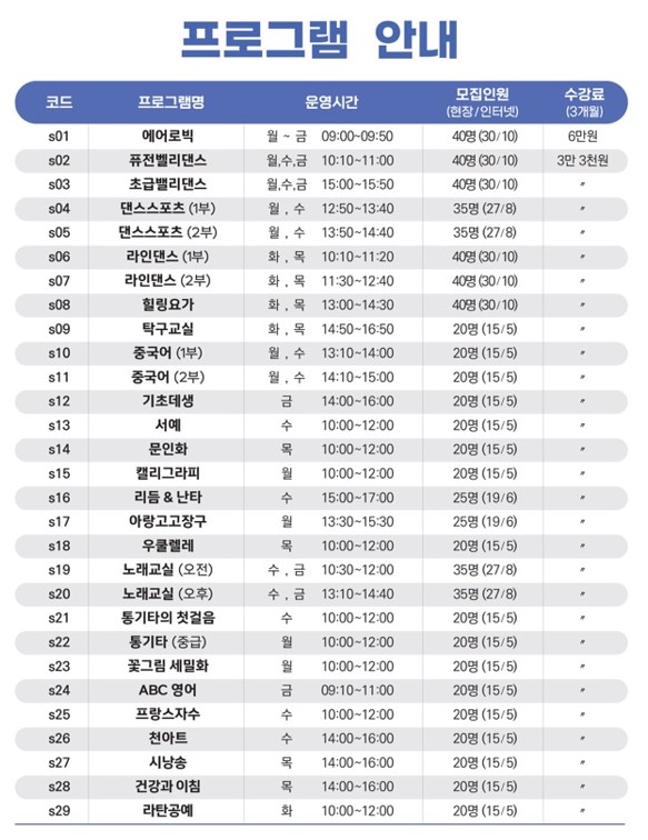 | 12 | 2023년 3분기 수송동 주민자치센터 프로그램 수강생 모집 |