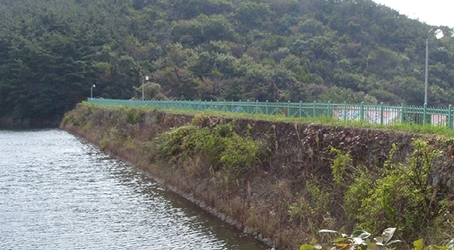 • 일제강점기 군산은 한반도 침략의 전초기지가 되어 인구의 유입이 늘어나 그때까지 이용하던 수덕산 정수장으로는 식수문제를 해결할 수 없게 되자 새로운 저수지 공사로 건립된 수원지이다. 1912년 6월 시작된 공사는 1915년 1월에 준공하였는데 연 인원 10만명이 동원된 공사였다고 한다.