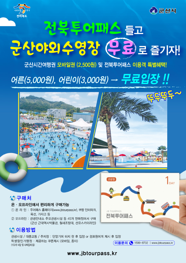 | 118 | 전북 투어패스를 들고 군산 야외 수영장 무료로 즐기세요 |