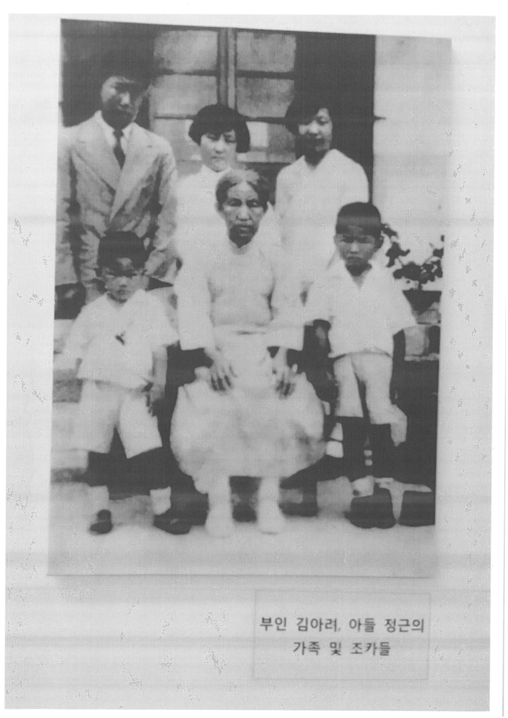 부인 김아려, 아들 정근의 가족 및 조카들 이라고 되어 있는데 안의사의 아들은 안준생으로 알고 있는데 그의 동생인 안정근이 아들의 이름으로 올려져 있더라구요