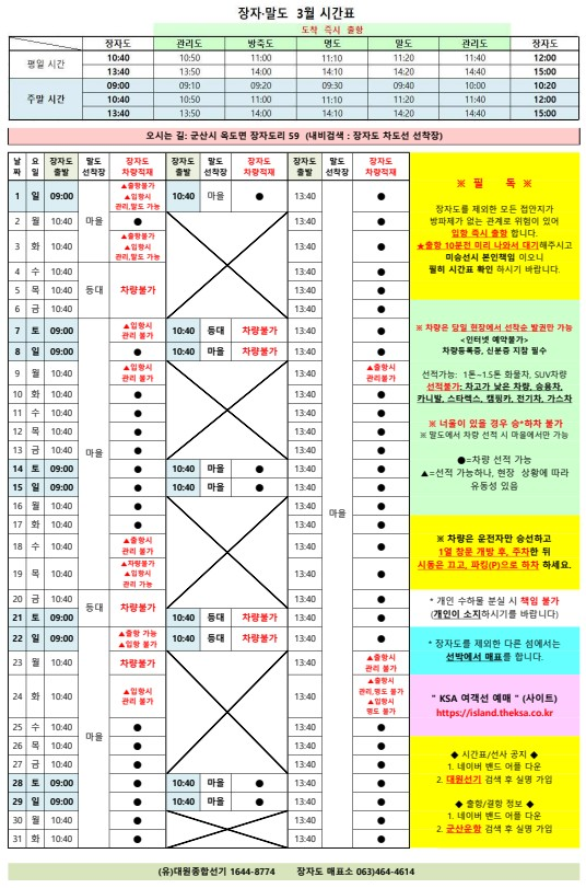| 800 | 장자도 | 2026 | 3 | 장자도 3 월 여객시간표 알림 |