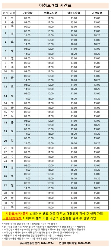 103 장자도 2025 7 어청도 7월 여객선 시간표 안내 첨부파일 있음