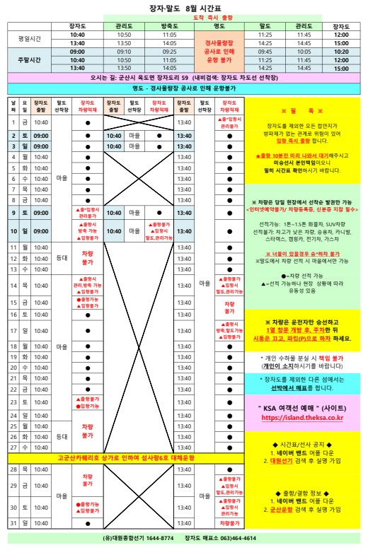 104 장자도 2025 8 장자도 8월 여객선 시간표 안내 첨부파일 있음