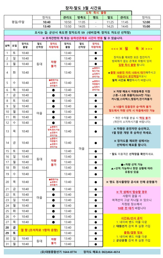 | 100 | 장자도 | 2025 | 5 | 장자도 5월 여객선 시간표 안내 |