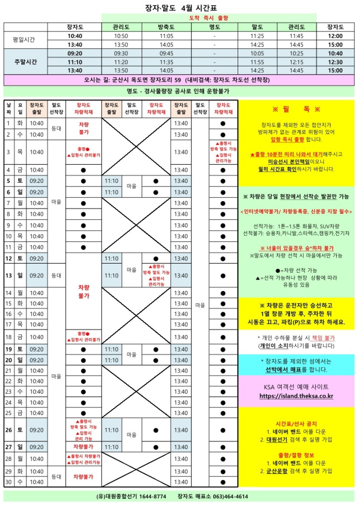 | 99 | 장자도 | 2025 | 4 | 장자도 4월 여객선 시간표 안내 |