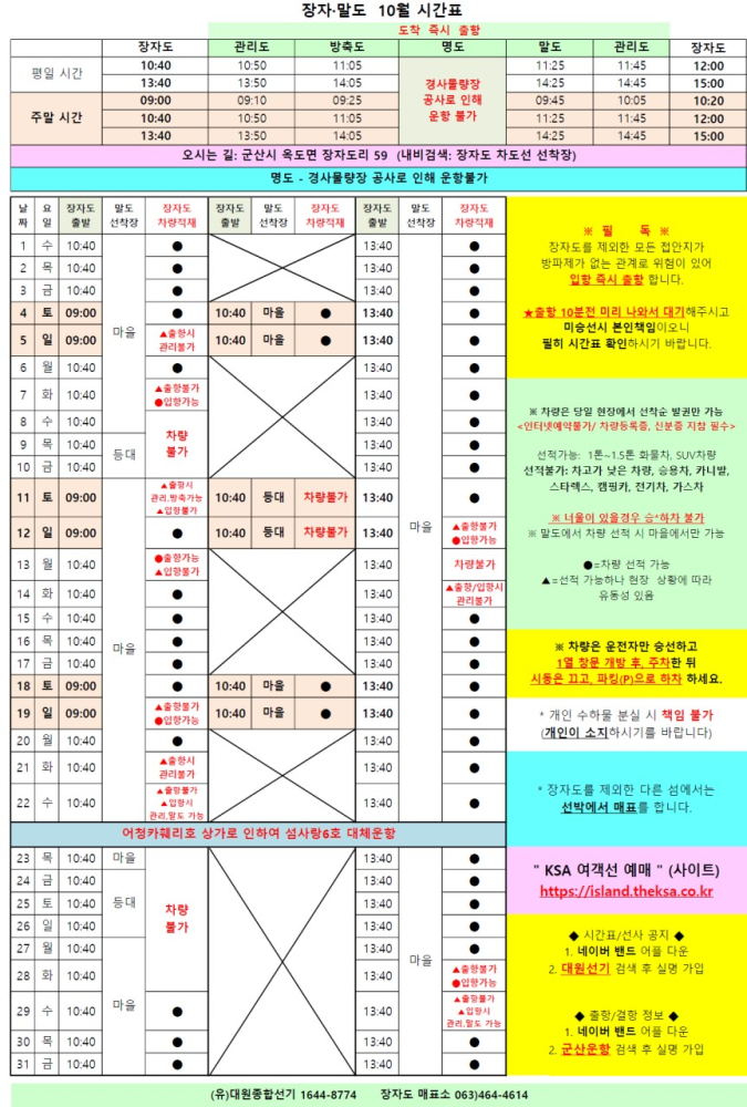 | 91 | 관리도 | 2025 | 10 | 관리도 10월 여객선 시간표 안내 |