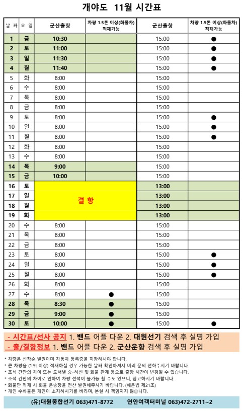 | 680 | 연도 | 2024 | 11 | 연도 11월 여객시간표 알림 |