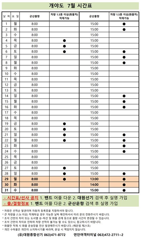 | 650 | 방축도 | 2024 | 7 | 방축도 7월 여객시간표 알림 |