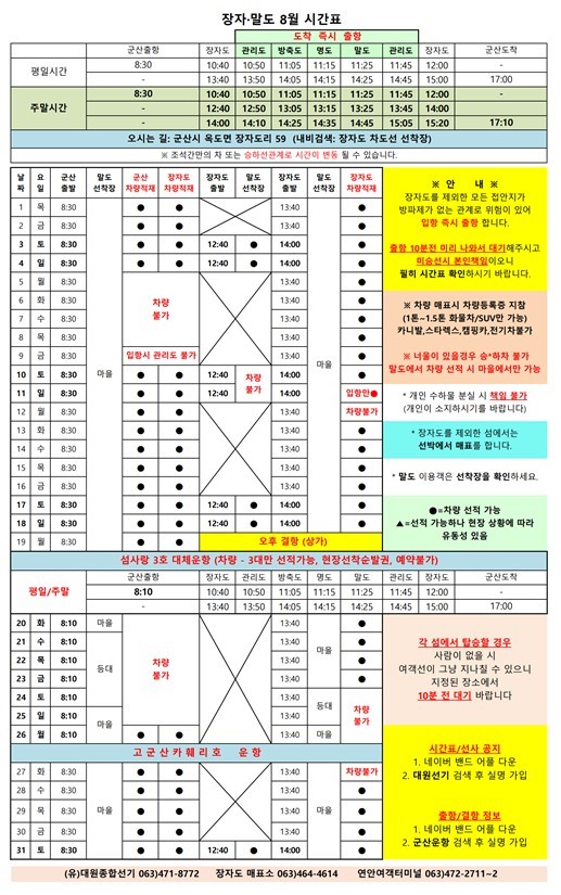 | 655 | 장자도 | 2024 | 8 | 장자도 8월 여객시간표 |