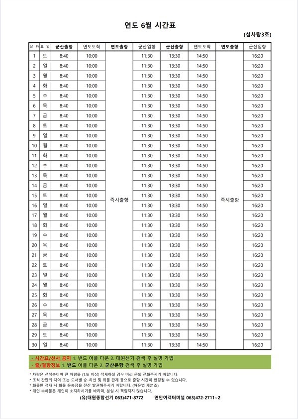 | 641 | 방축도 | 2024 | 6 | 방축도 6월 여객시간표 알림 |