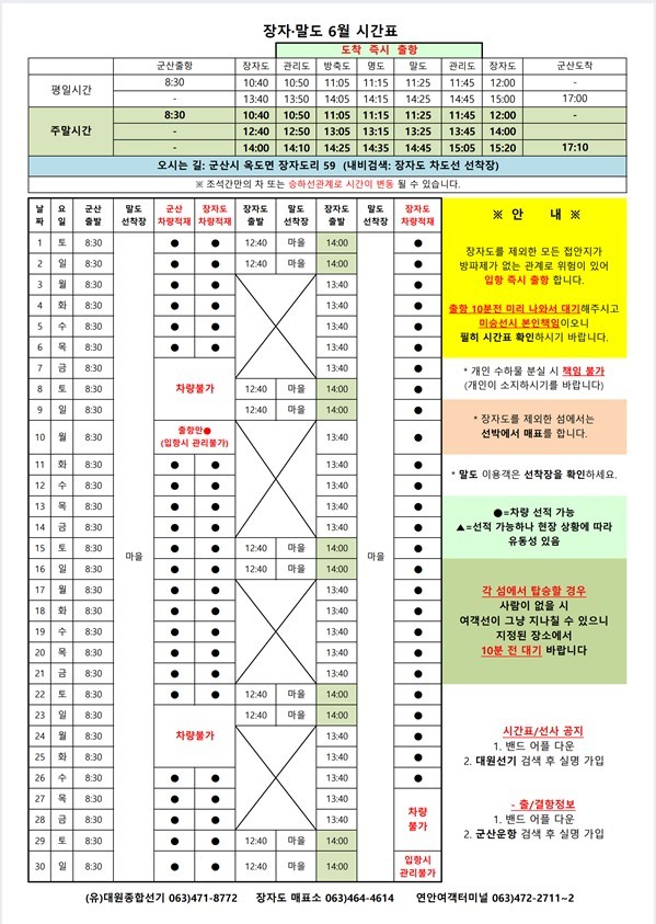 | 644 | 말도 | 2024 | 6 | 말도 6월 여객시간표 알림 |