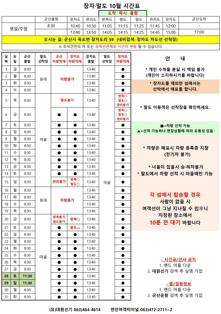 | 578 | 말도 | 2023 | 10 | 말도 10월 여객시간표 알림 |