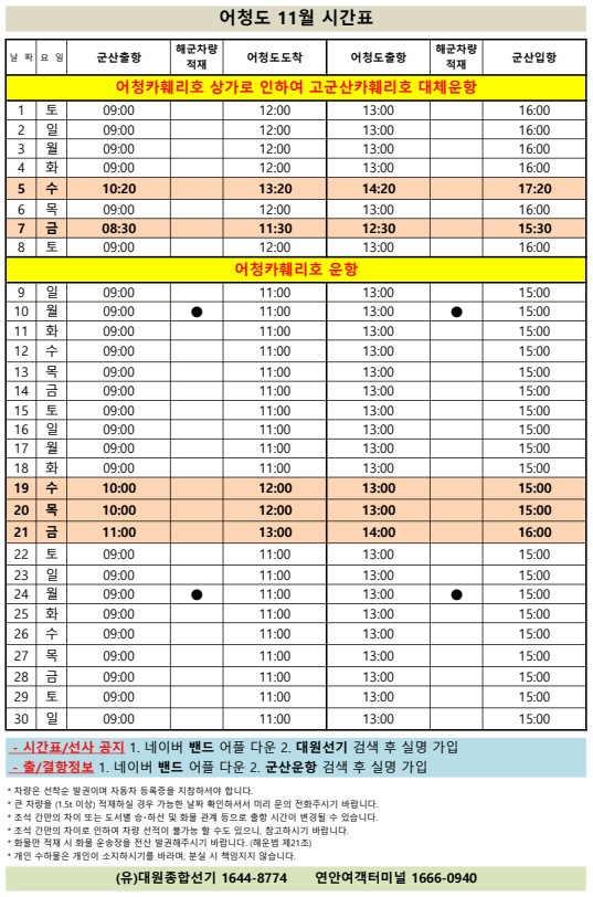 | 771 | 어청도 | 2025 | 11 | 어청도 11월 여객선 시간표 안내 |