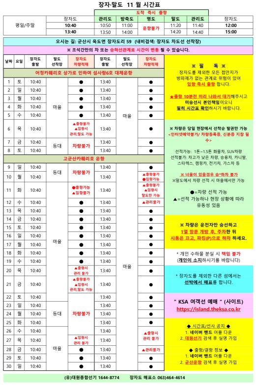 | 770 | 장자도 | 2025 | 11 | 장자도 11월 여객선 시간표 안내 |