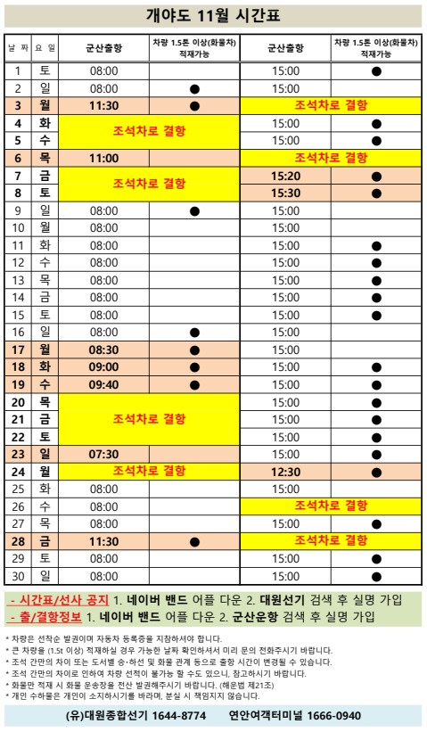 | 777 | 개야도 | 2025 | 11 | 개야도 11월 여객선 시간표 안내 |