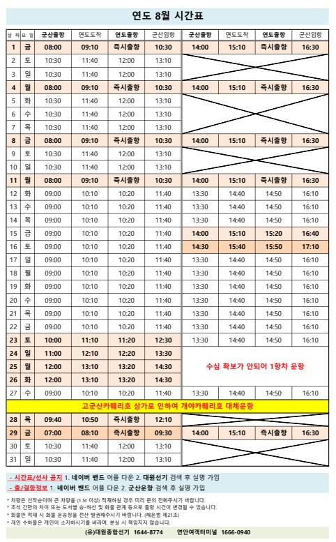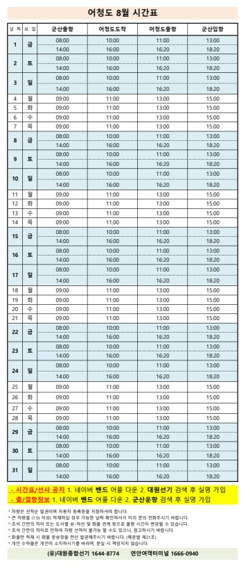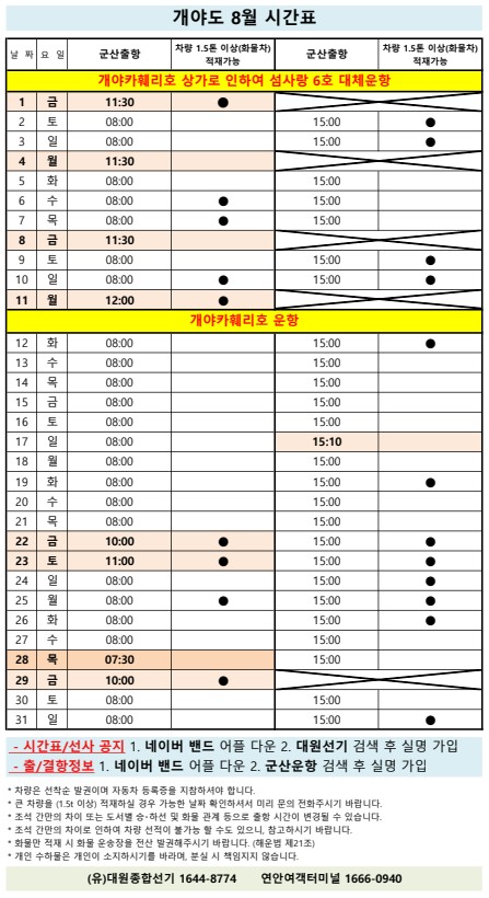 | 735 | 연도 | 2025 | 8 | 연도 8월 여객선 시간표 안내 |