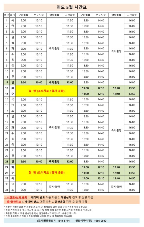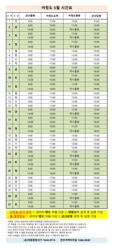 | 723 | 연도 | 2025 | 5 | 연도 5월 여객선 시간표 안내 |