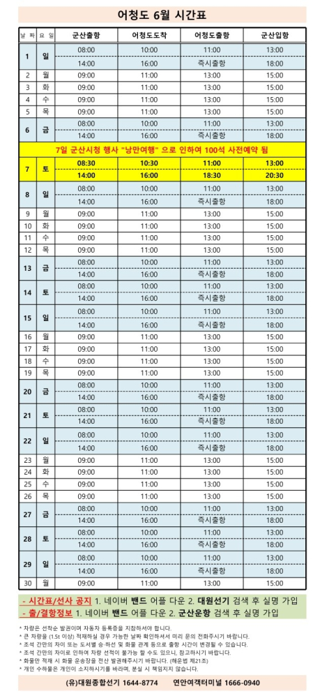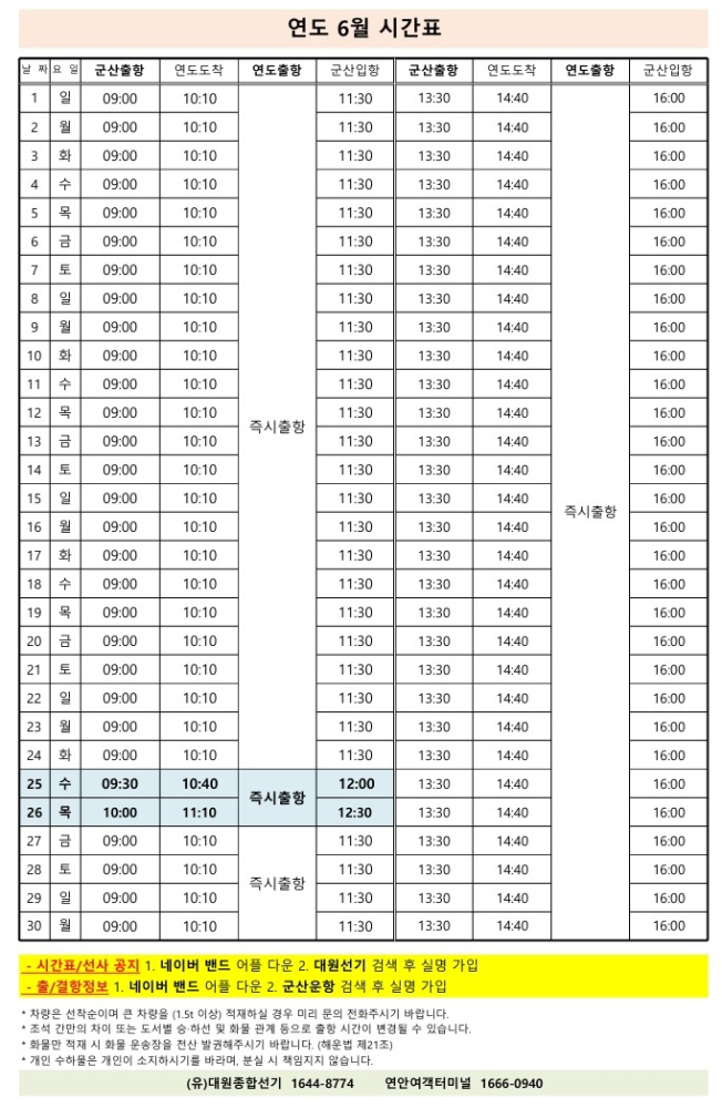 | 727 | 연도 | 2025 | 6 | 연도 6월 여객선 시간표 안내 |